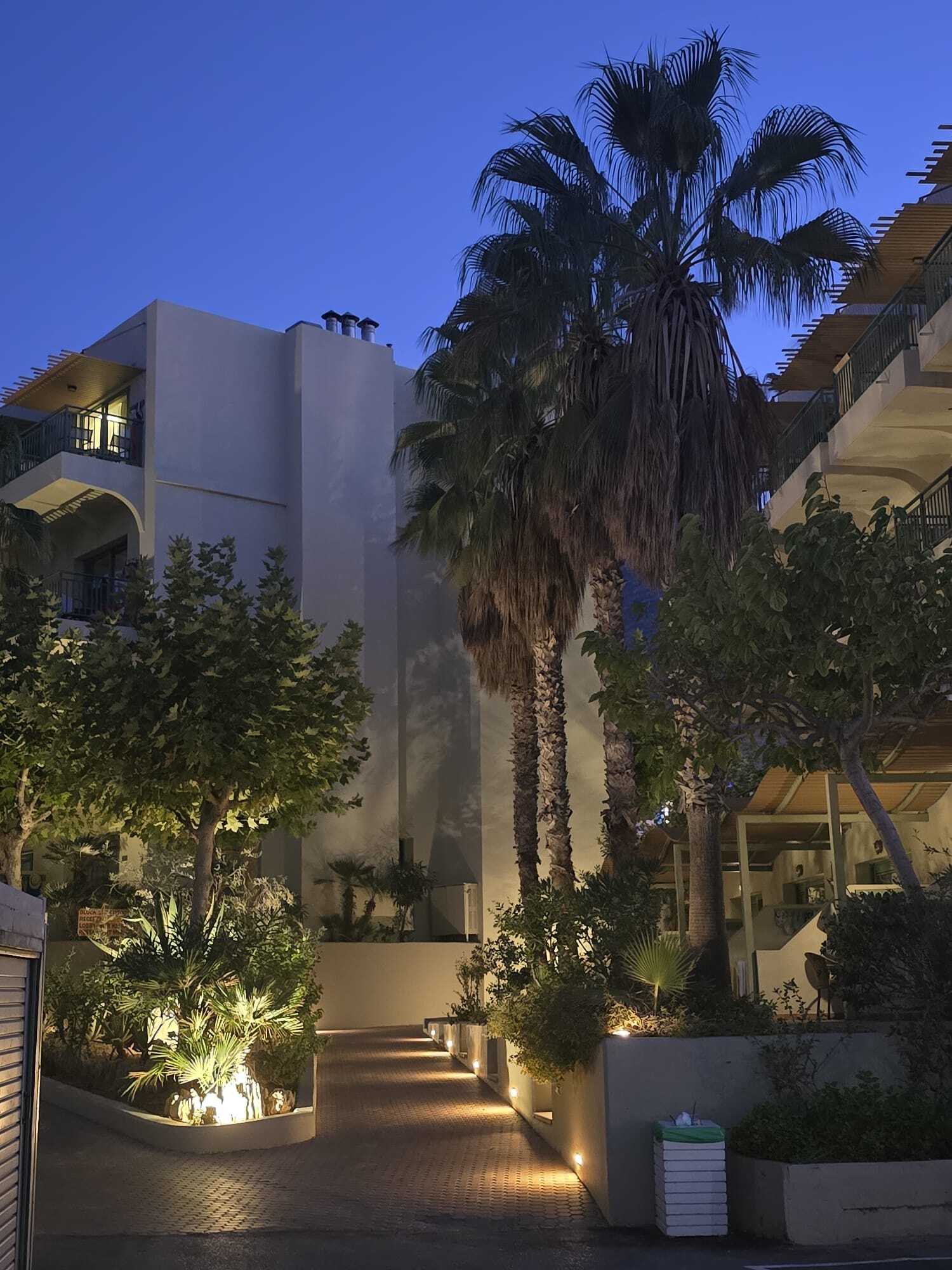 Położony jest w popularnym kurorcie Hersonissos, w odległości zaledwie 50 m od publicznej, piaszczystej plaży, do której prowadzi przejście przez ulicę.