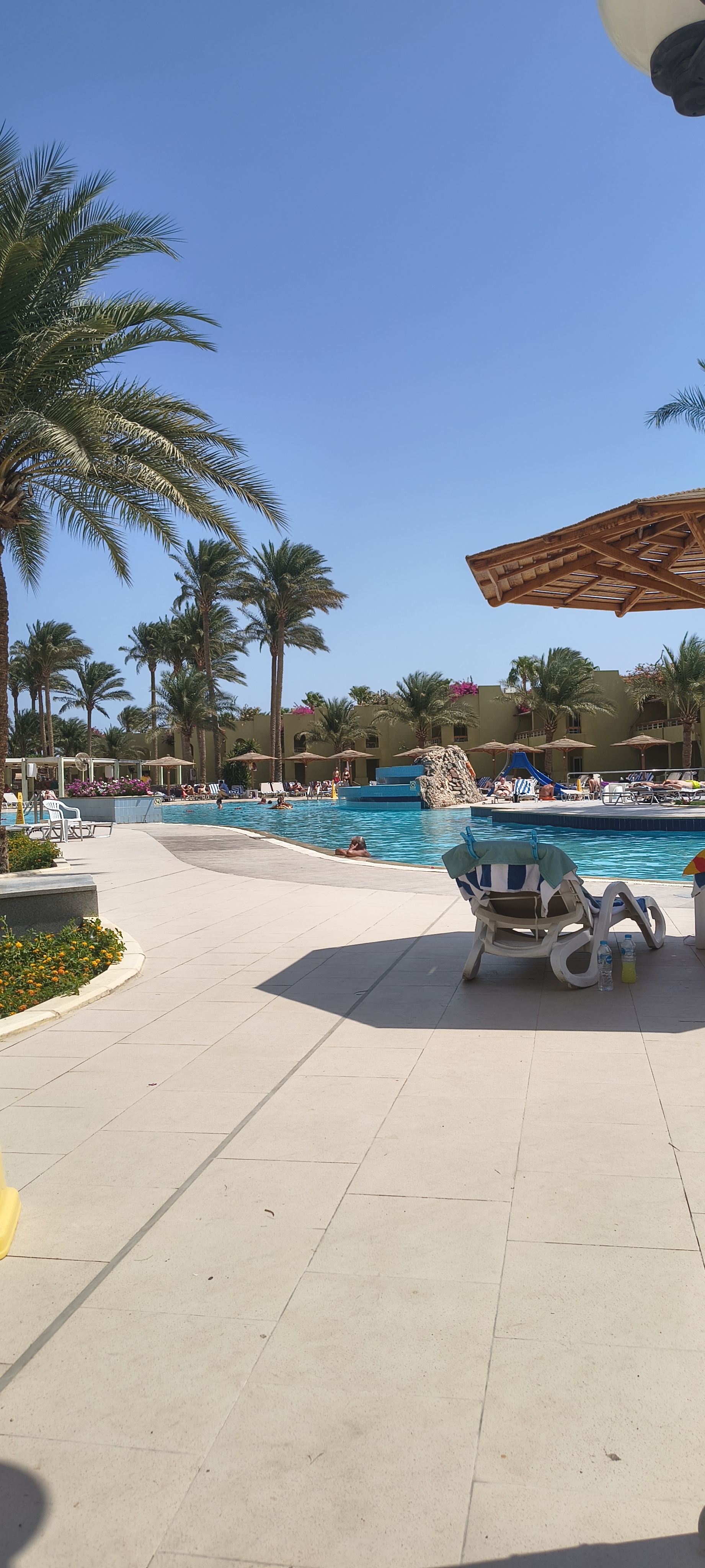 Hotel zaskoczył mnie bardzo pozytywnie, dostałam śliczny pokój z widokiem na morze. W basenach jest zawsze dużo miejsca , leżaków nie brakuje. Morze jest na swoim miejscu w przeciwieństwie co do sąsiadujących hoteli. Przy bojach pływają kolorowe rybki co uatrakcyjnia snurkowanie. Recepcja zawsze pomocna. Sprzątanie pokoju cidzienne: mycie podłogi, opóźnianie koszyka, ścielenie łóżek, wymiana ręcznikowy, uzupełnianie minibarku w wodę. W restauracji zawsze czyściutko, sprzątane na bieżąco, jedzenie donoszone na bieżąco. Śniadania tradycyjnie jajka parówki Pieczywo sery wędliny jajecznica omlet płatki , przysmaki egipskie. Obiad: kurczak , gulasz mięsny i warzywny Ziemniaki ryż makaron z sosem , często danie typu włoskiego np canneloni, 2 zupy, ryby, dania z grilla, Kolacja podobna do obiadu , na ostatni dzień były kraby. Mini bar dla dzieci. Napoje zamawiane u kelnera. Bardzo przy basenie pizza , hot dogi, frytki, raz byly burgery. Na basenie aerobik , gra w piłkę ręczna. Wielu ratowników wypełniających swoje obowiązki bardzo dobrze. Raz byly rozstawione dmuchane tory przeszkod i inne atrakcje. Dobre drinki. Bezpłatne restauracje ala carte jeżeli sa wolne stoliki. Orientalna , azjatycka i włoska. Polecam dwie ostatnie. Na terenie hotelu djlepy z biżuterią galanteria apteka i z ubraniami przekąskami butami akcesoriami do pływania. Można kupić kartę sim za 8 euro 20 GB. W aptece leki na klątwę faraona za 13 euro ( uwaga na drinki w barze w hotelu). W hotelu bez problemu wydawane śniadanie na wynos. Piękne palmy , teren zadbany , obsługa bardzo sympatyczna bardzo entuzjastycznie nastawiona do dzieci. Pobyt bardzo nam sie podobał jeżeli zaplanujemy pobyt w Hurghada to z pewnością w tym hotelu. Dziękujemy za wspaniałe wakacje