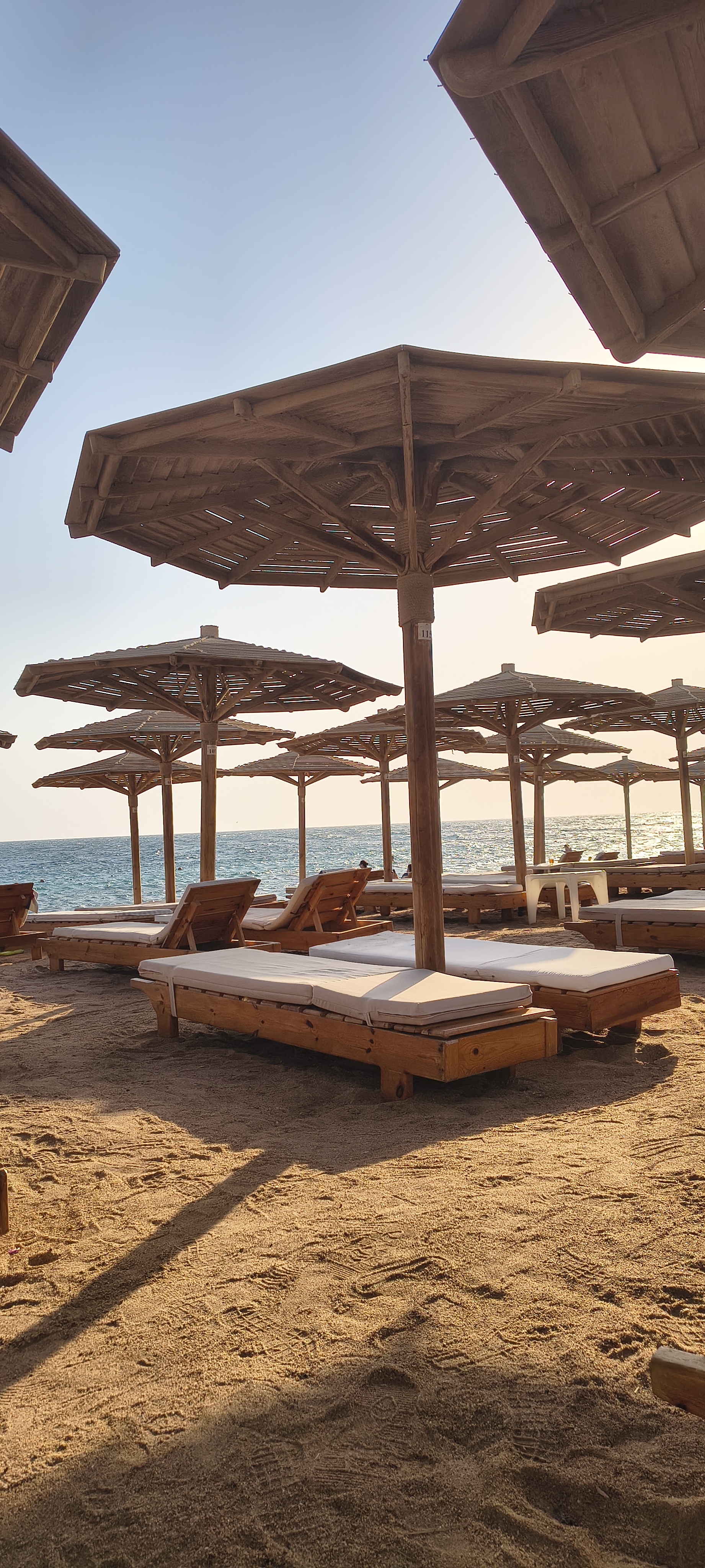 Palmy na plaży , dobre rozmieszczenie ze nie trzeba duzo chodzić miejsca wystarczająco dla wszystkich gości, dobre drinki, morze na swoim miejscu.