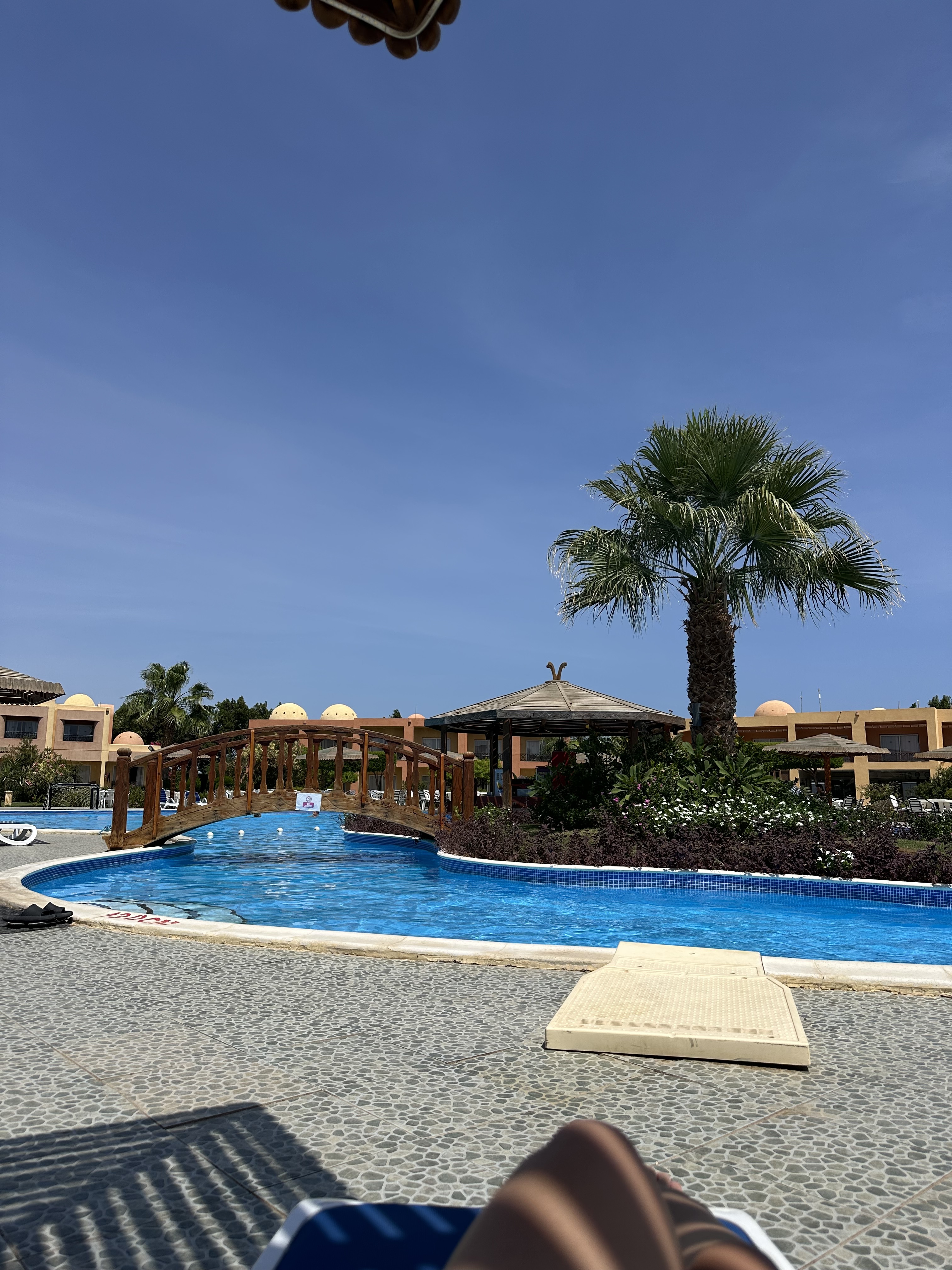 Mała ilość leżaków przy basenie, nie ma problemu żeby obsługa doniosła z plaży- ale te już są toporne i nadszarpnięte zębem czasu. Brak zejścia z plaży do wody. Jedyny sposób to z pomostu.
