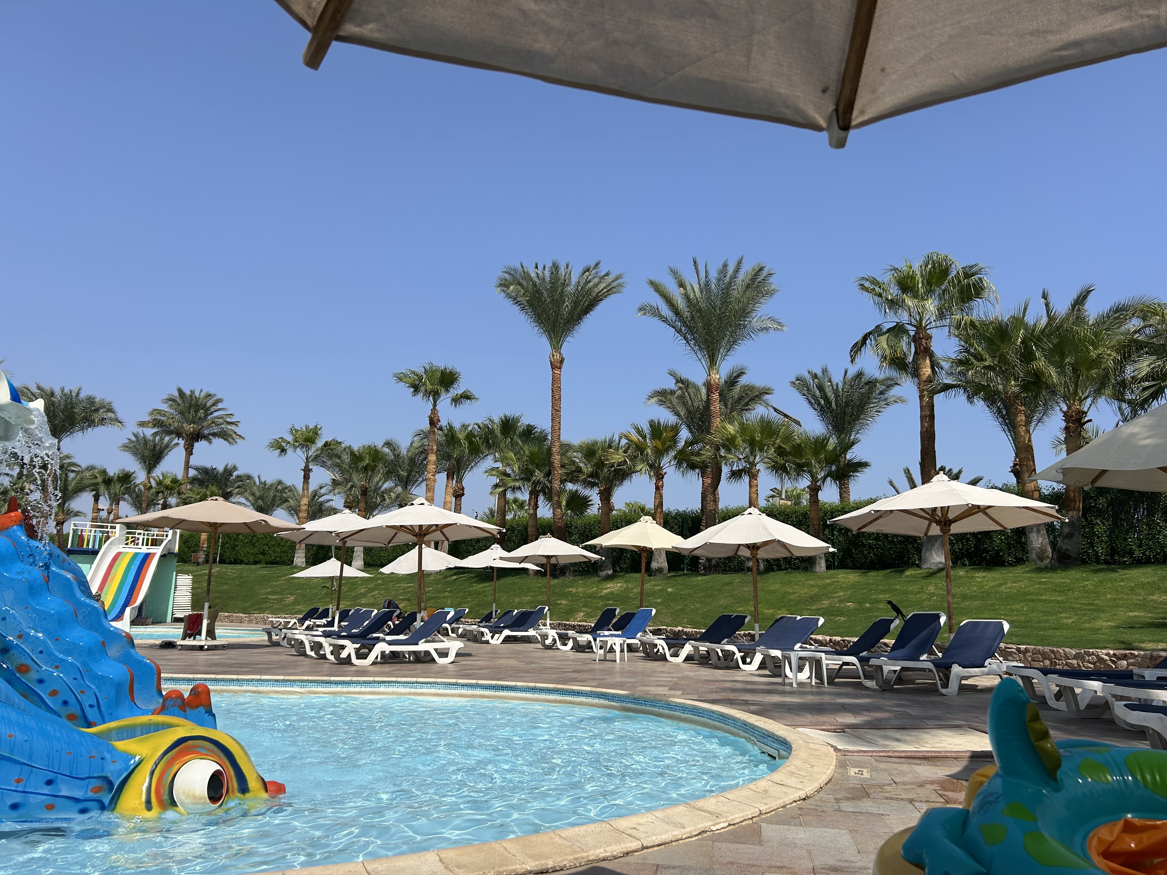 Zdecydowaliśmy się na ten hotel po opiniach osób, które były tam już przed nami…. I nie zawiedliśmy się ani trochę! Był to wspaniały tydzień w Sharm, nie spodziewałam się że aż tak będzie mi się podobało (zawsze byłam sceptycznie nastawiona na Egipt). Jestem oczarowana okolicą, infrastrukturą, organizacją. Byliśmy rodziną 2+2 (5latek i 7miesieczniak). 5 latek nie chciał wracać do pokoju 😅 baseny z atrakcjami sztos! Animacje wieczorne i w ciągu dnia jak dla nas bez znaczenia bo większość dnia spędzaliśmy na basenach ze zjeżdżalniami, ale animacje były i z tego co widziałam były całkiem fajne. Jedzenie, kolejną rzecz której się bałam. W naszej ocenie jedzenie bardzo smaczne, bardzo zróżnicowane, dla każdego coś dobrego. Kolacja codziennie była w innej tematyce: azjatycka, włoska, meksykańska itp. Nie było nudy, choć oczywiście dla dzieci bardziej wybrednych frytki były codziennie 🤣 na co się nastawić jadąc tam po raz pierwszy: wszystko jest strasznie słodkie, napoje zwłaszcza, ale to podobno wynika z ich gościnności, im słodsze tym człowieku czuj się bardziej ugoszczony 😊3 restauracje all inclusive, na jednej z nich typowo dania wegetariańskie i tzw healthy food. Pokoje czyste, duże, przestronne, codziennie sprzątane (dodatkowy dolar dla przemiłego pana czynił cuda). Ale i bez tipa pokoje sprzątane codziennie. Wszyscy pracownicy mili, uśmiechnięci, mówiący po angielsku co uważam za ważne (Polaków często biorą za Rosjan i mówią z automatu po rosyjsku, ale wystarczy napomknąć że woli się po angielsku i nie stanowi to żadnego problemu). Wszyscy tam mam wrażenie kochają dzieci, czy to na terenie hotelu czy już w sklepikach poza hotelem, uśmiechy, pierwszeństwo w kolejkach. Jeśli komuś zależy na hotelu blisko plaży to to nie to miejsce, do plaży jedzie się ok. 25 minut i nie jest to plaża jak ze snu 😅 samą plaża w sobie jest piaszczysta (piasek gorący jak diabli), natomiast samo wejście do wody… no bez butów to niezły slalom i wygibasy by stopy nie bolały, bardzo kamieniste zejście. Mnie osobiście plaża nie powaliła ale byliśmy żeby samemu się przekonać. Rafa koralowa przepiękna i faktycznie bardzo blisko brzegu, nie trzeba strasznie daleko wypływać by coś zobaczyć, ale trzeba mieć maski do nurkowania. Polecamy wycieczkę batyskafem, mega widoki zwłaszcza jadąc z dziećmi. No miłe zaskoczenie. Nie ma się do czego przyczepić, wrócimy tam ze znajomymi na pewno! Przecudowne miejsce. 🩵