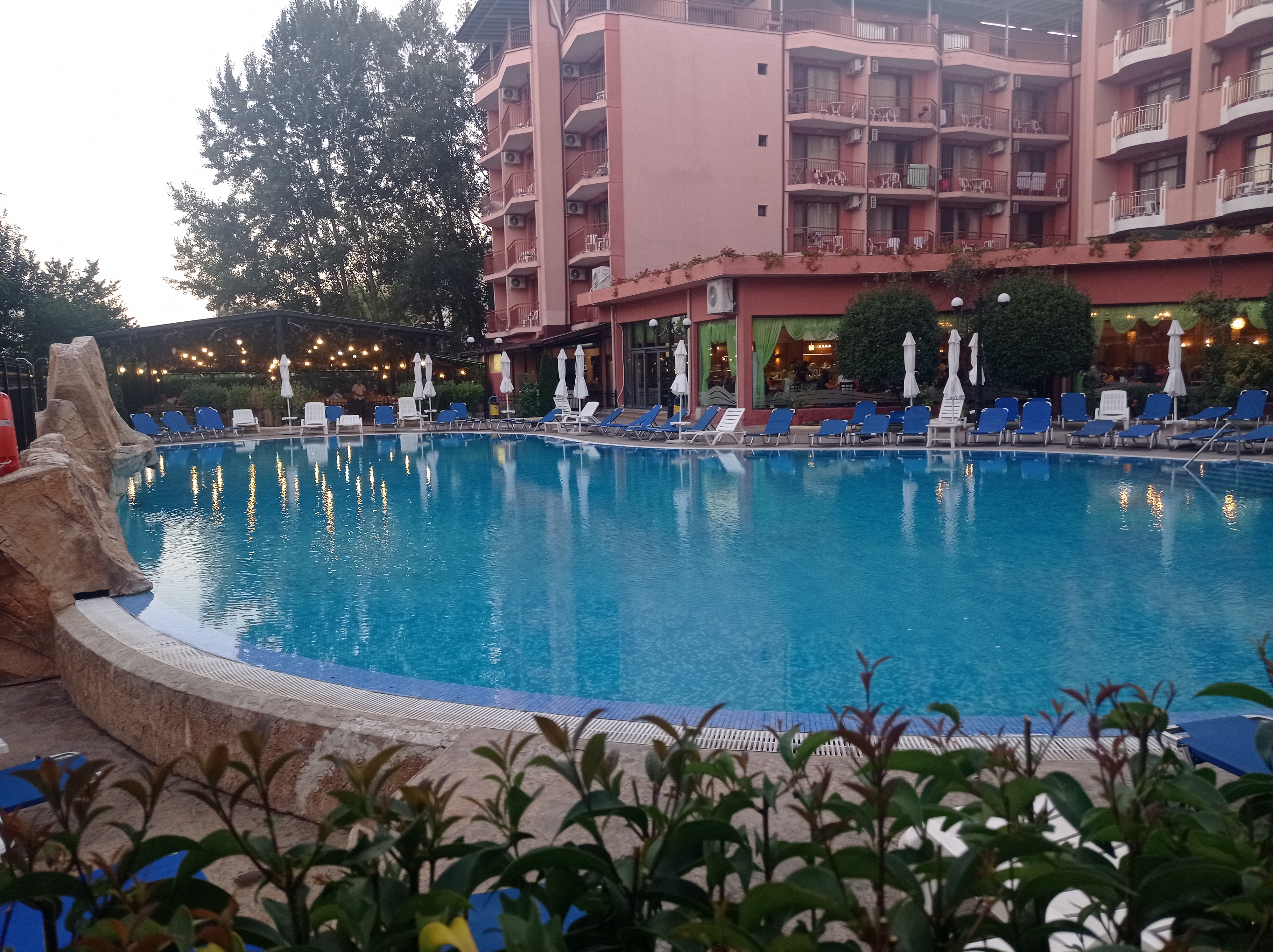 Był to nasz pierwszy wyjazd na all inclusive więc nie mamy porównania ale podobało się nam bardzo ,hotel ładny obsługa bardzo miła i pomocna .Całkiem wysoki standard ,bardzo dobre jedzenie między posiłkami koło basenu podają zakąski pizza, nagetsy,hamburgery. Są trzy baseny 1,70 m 1,50 m i taki brodzik dla bobasów, niestety te małe wymagaja miejscami szybkiej naprawy.Minus to niekiedy brzydki zapach z odpływu w łazience. Pokoje sprzątane codziennie . W TV sa dwa polskie kanały. Do plaży jest ok.20-25 min nam to nie przeszkadza. Komplet leżaków koszt 27 lev. Na przeciwko hotelu jest sklep gdzie można kupić podstawowe artykuły. Transfer z i do blisko bo Ok.30 min fajnie bo byliśmy pierwsi więc nie czekaliśmy na nikogo .Koło basenu jest bilard 4 lev i piłkarzyki 2 lev i pingpong za darmo.