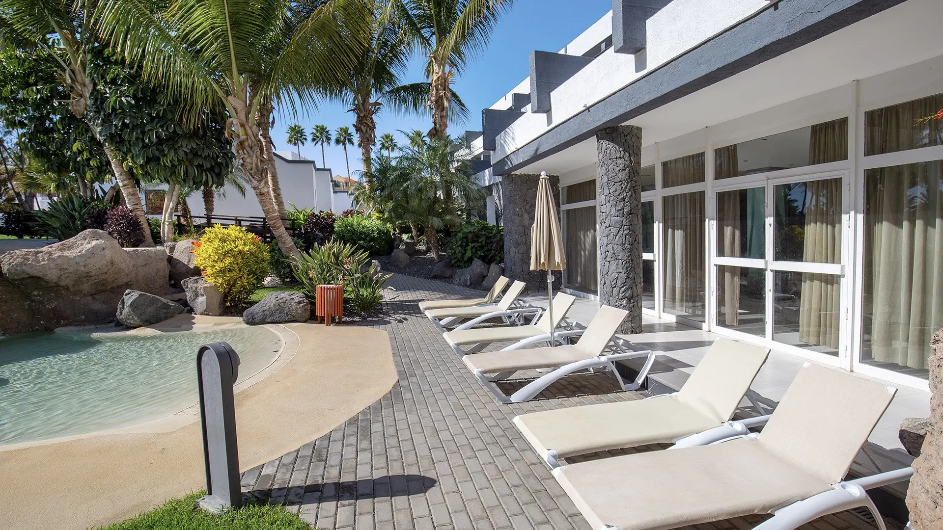 Publiczna plaża Playa de Tarajalejo znajduje się przy hotelu. Jest to naturalna plaża z ciemnym piaskiem i kamieniami, bez serwisu plażowego. W odległości 15 km znajduje się Playa de Sotavento, wyróżniona certyfikatem Błękitna Flaga.