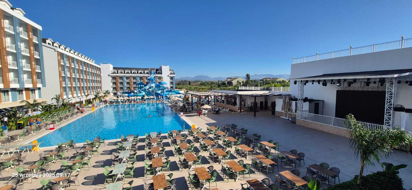 To nowoczesny, pięciogwiazdkowy ośrodek wypoczynkowy, idealny dla rodzin szukających pełnych atrakcji wakacji w tureckiej dzielnicy Colakli. Otwarty w 2023 roku, hotel oferuje luksusowe zakwaterowanie w przestronnych i komfortowych pokojach, które zaspokoją potrzeby zarówno indywidualnych Gości, jak i grup. Goście będą zachwyceni bogatą ofertą rekreacyjną, w tym aquaparkiem, który dostarcza niezapomnianych wrażeń oraz różnorodnymi programami animacyjnymi prowadzonymi przez wykwalifikowany zespół. Hotelowa kuchnia międzynarodowa zapewnia wyśmienite posiłki w 5 restauracjach, w tym 3 a la carte, zachęcając do kulinarnych podróży. Na terenie kompleksu znajdują się liczne bary, centrum spa oraz różnorodne możliwości aktywności sportowej. Dla najmłodszych przygotowano kolorowy mini klub, plac zabaw, a także pokoje gier i zabaw. Położenie w pobliżu nadmorskiej promenady zachęca do wieczornych spacerów, a darmowy bus zapewnia wygodny dostęp do prywatnej, piaszczystej plaży, oddalonej zaledwie 800 m od hotelu.