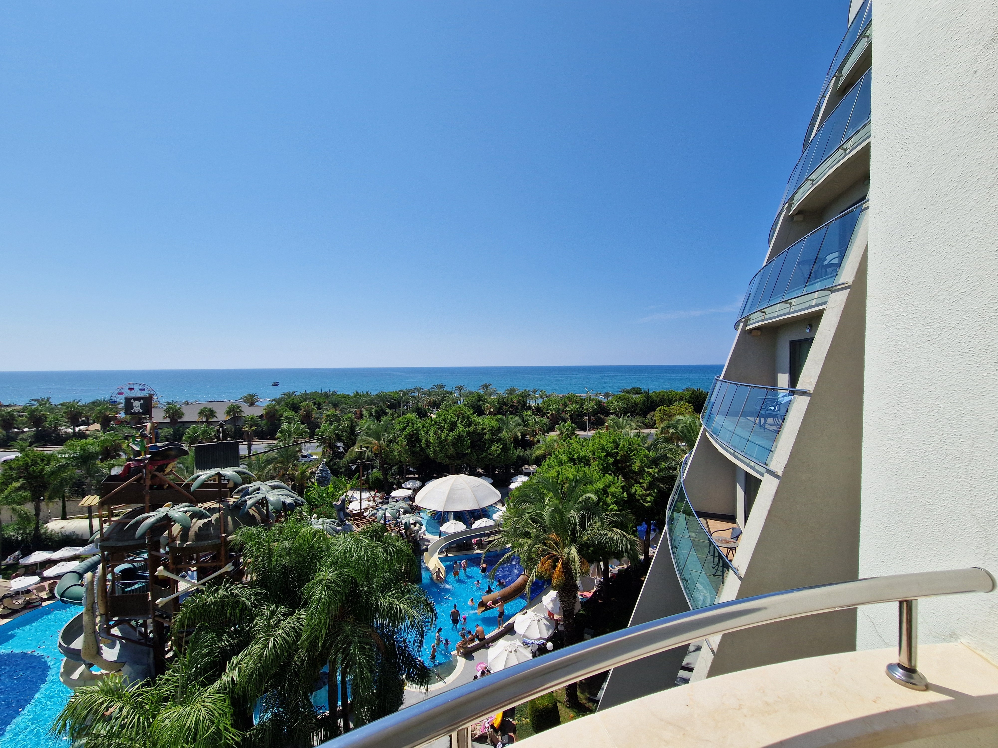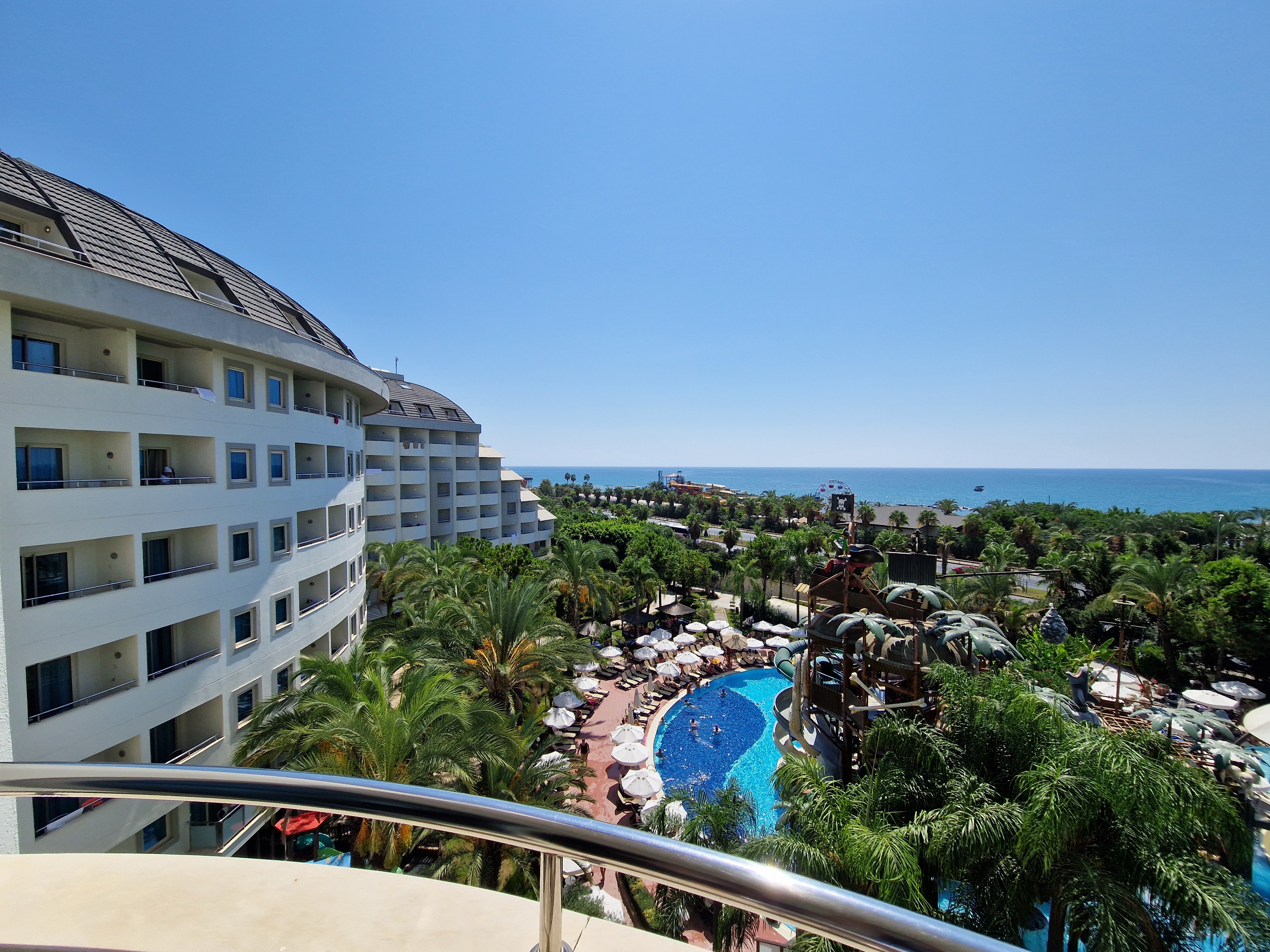 Hotel ogromny nie jest się wstanie przejść go przez tydzień pokoje czyste codziennie sprzątane można by było się przyczepić do delikatnych mankamentów wynikających z użytkowania ale nie wpływa to na ocenę pokój od strony morza rzeczywiście głośno na zewnątrz że względu na jeżdżące samochody ale jak są drzwi zamknięte nic nie słychać zaskoczył nas pokój rodzinny gdyż zejście do drugiego pokoju było na dół :) jedzenie pyszne każdy znajdzie coś dla siebie oczywiście były Dania które nam nie podpasowaly ale zawsze coś można znaleść codziennie kucharz gotował koło basenu spaghetti, makarony tajskie każdy mógł sobie wybrać składniki jakie mu pasowały, pełno zjeżdżalni basenów fajny tunel którym szło się na drugą stronę gdzie była plaża i kolejne zjeżdżalnie i baseny, darmowe w wyznaczonych godzinach wesołe miasteczko, pełno atrakcji, pokazów, najbardziej podobał się nam Pan który wieczorami grywał na fortepianie koło baru na parterze nieopodal recepcji, polecam barmanów na dyskotekach robią fajne drinki i tak samo koło Basenu od strony plaży. Napewno jeszcze raz odwiedziłabym hotel.