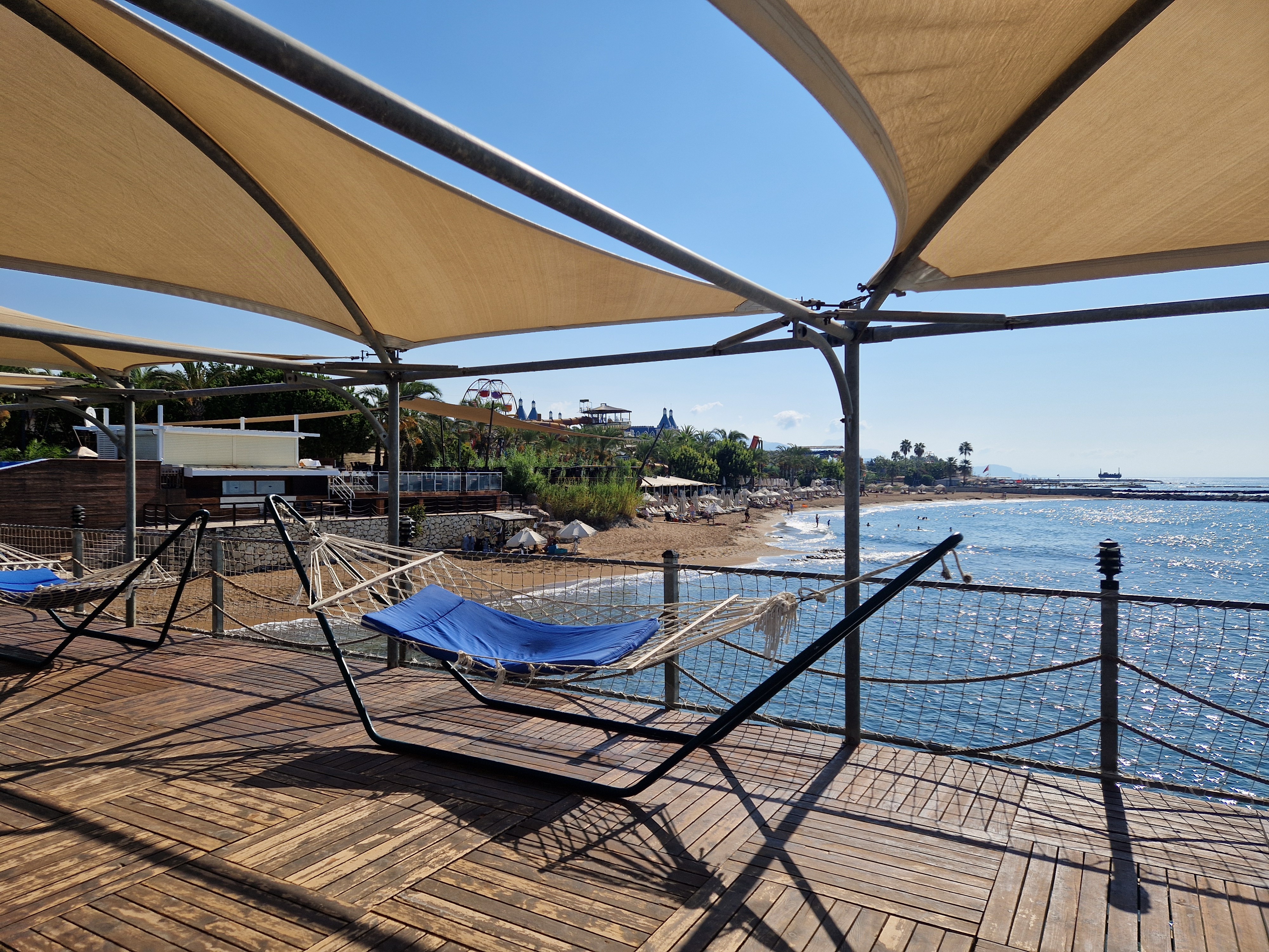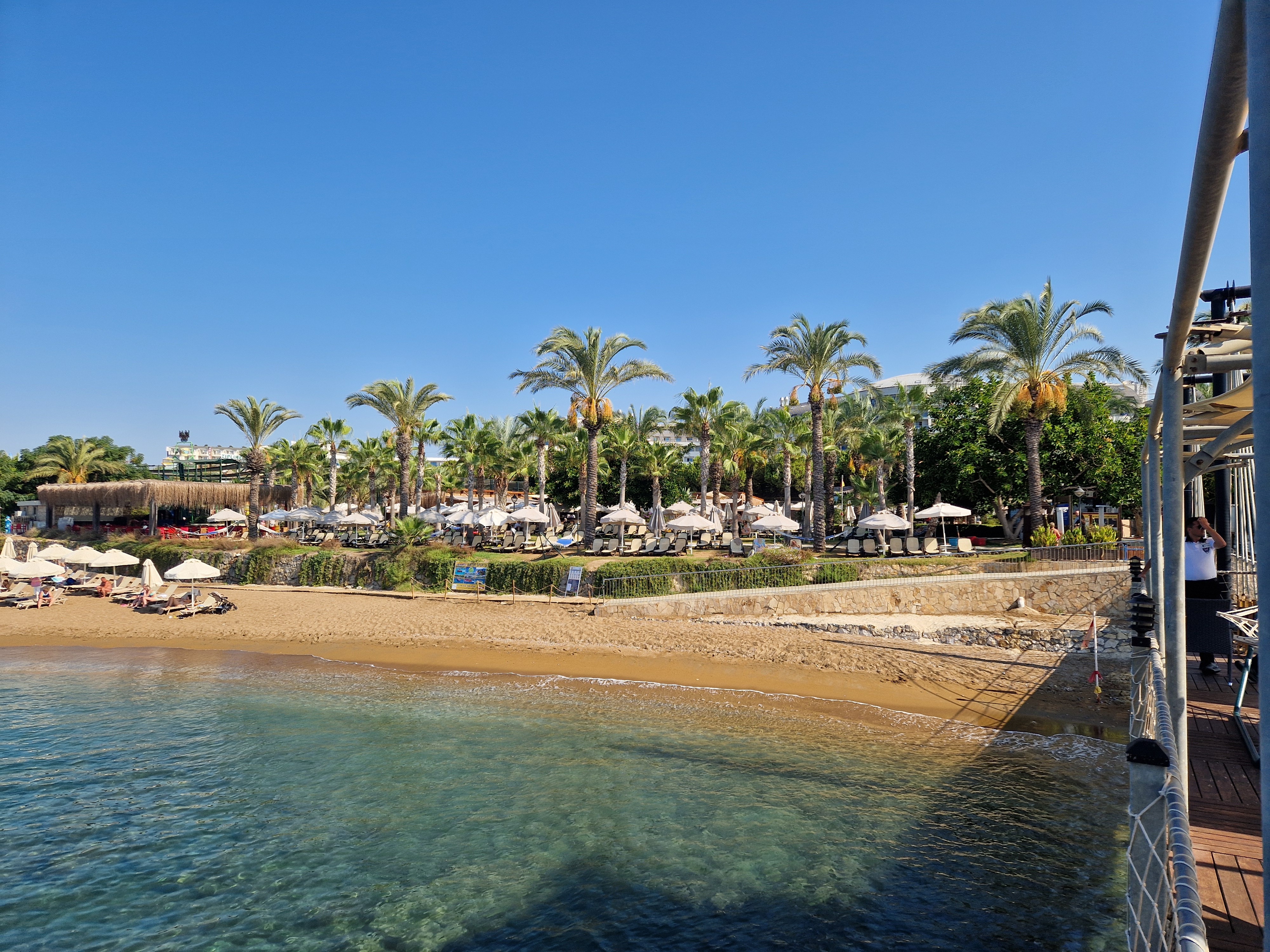 Goście hotelu mogą cieszyć się dostępem do prywatnej, piaszczysto-żwirowej plaży, do której prowadzi przejście tunelem pod ulicą. Na plaży można korzystać z bezpłatnych leżaków, parasoli i ręczników plażowych. Do dyspozycji jest również pomost oraz basen, aquapark dla dorosłych i dzieci oraz wesołe miasteczko dla najmłodszych. Restauracja serwująca przekąski i napoje oraz możliwość wynajęcia prywatnych loży (za dodatkową opłatą) dopełniają komfortowego wypoczynku nad morzem.