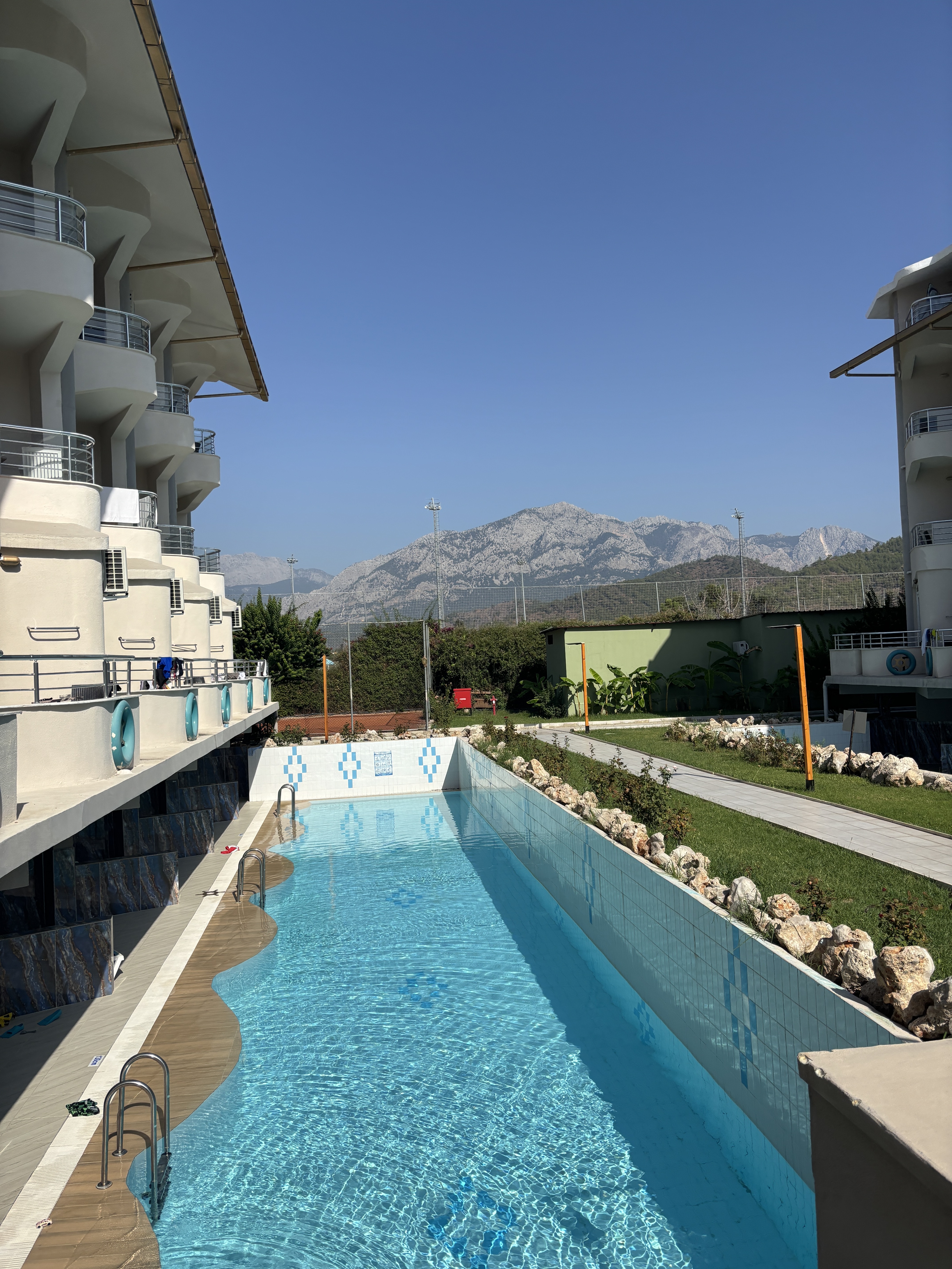 Dziś to jest 17 .08. 2025r. powróciłem z rodziną z tego hotelu który jest totalnym DNEM WŚRÓD HOTELI W TURCJI. Dwie gwiazdki to wszystko co mogło by widnieć w ofercie. Pokoje, łazienki, korytarze hotelowe, strefa basenu jednego w części hotelowej powinna być zamknięta natychmiast przez sanepid. Nikt nie sprząta basenu, nastawiali znaków że ślisko więc uważaj bo sam leżałem, nikt przez cały pobyt nie pojawił się że ściągacza by ściągać wodę ze śliskich płytek a goście i dzieci się wywracają. Nie licz na parasol przy basenie bo jest ich kilka z firmy algida małe rozproszone zasyfiałe, jeśli chcesz leżak przy basenie to jeśli o 5:30 nie będziesz z ręcznikami nie licz na leżak. Totalnie zero przez cały pobyt animacji przy basenie hotelowym. A teraz część po drugiej stronie ulicy: jeśli biuro podróży pokazuje ofertę i widzisz te wszystkie zjeżdżalnie to pamiętaj tylko cztery małe należą do tego chotelu reszta to hotel za siatką do którego nie masz wstępu, druga sprawa woda w tej strefie basenowej słona jak w morzu bo ryby pływają do których nie wpuszcza cię bez maski, woda gorąca naprawdę gorąca nie masz ochoty tam wchodzić ratuje cię zimny prysznic, leżaki i parasole tak samo jak na hotelu brak i popsute zasyfiale i nie zobaczysz nikogo kto sprząta - KATASTOFOA natomiast jak byś miał ochotę na drinka przy tej strefie zabawy to ZAPOMNIJ DOPIERO OD 18:00 . O plaży nie wspomnę bo tam to już jest wysypisko śmieci i leżaków które powinny być dawno na złomie. NIGDY NIE BYLEM W GORSZYM HOTELU. Jedzenie jak to w Turcji zjesz ale nie licz na coś fajnego bo nie dostaniesz standard jest jak wszędzie musi być -- byłem w tańszych hotelach i było dużo lepsze jedzenie więc sam sobie odpowidz. Pozdrawiam