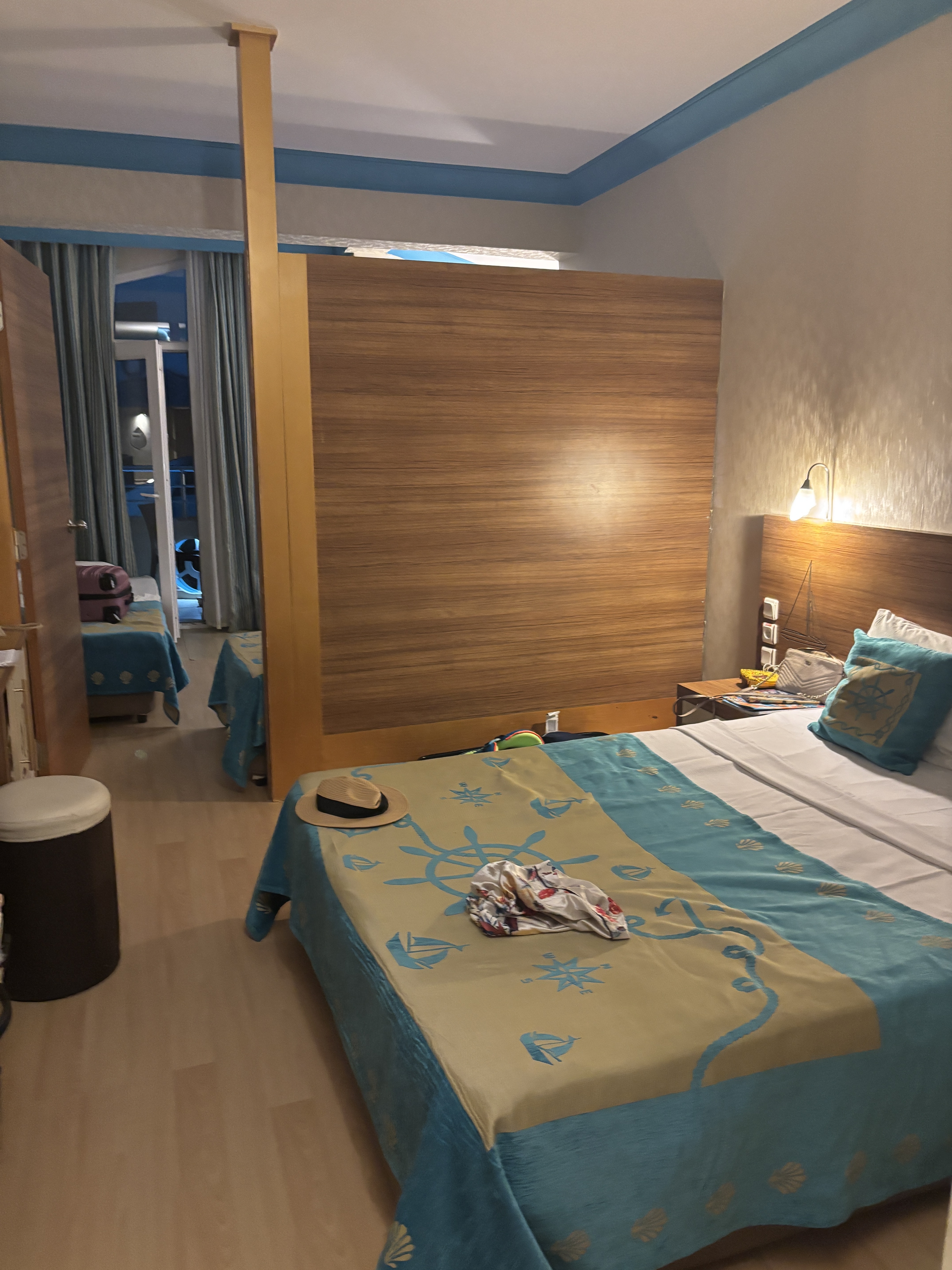 Hotel ma 5 gwiazdek a nie zasługuje na to, obsługa miła jak dostanie pieniądze do ręki, internet płatny działa gorzej niż to warte, papier toaletowy dali 3 rolki na cały tydzień dla 6 osób, pokój dla 4 osób ma 14 m2 i dostawka to jest materac na podłodze, w pokojach grzyb na ścianie i materace brudne co dodaje zdjecia. kupiliśmy lepszą opcję pokoju za 100 euro na miejscu z basenem to rozwalona drabinka była i nie ma jak wyjść z basenu,do tego pełno włosów, chusteczek i syfu w basenie, nawet było tyle szkła ze palca sobie przeciąłem a po zaniesieniu do lobby 10 sztuk szkła babka powiedziała że umyją basen po czym przyszła pani z szufelka i zmiotka posprzątać, do tego sejf nie działa a rezydent każe wkładać wszystko do sejfu bo może zniknąć a hotel nie bierze za to odpowiedzialności, w nie których pokojach w ogóle nie ma sejfu, jedzenie strasznie monotonne, codziennie to samo. Aquapark spoko jest akurat tu duży plus dużo atrakcji dla dzieci trochę mniej dla dorosłych. Ale kradną więc jak idziecie to tylko ręczniki bo nawet kółka potrafia ukraść.